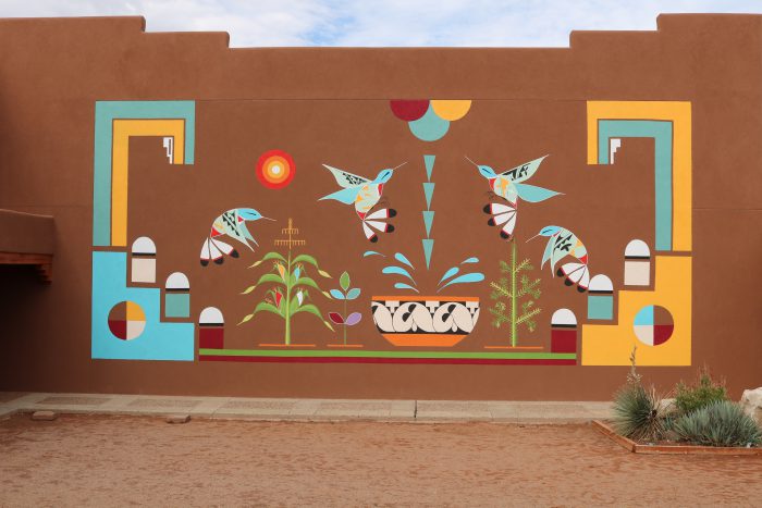 The mural is the center piece of the Walatowa Vistor Center, located in their plaza. The mural will serve as the backdrop for ongoing programming that will take place in the plaza. The plaza has since been used for a wedding and two community gatherings.
